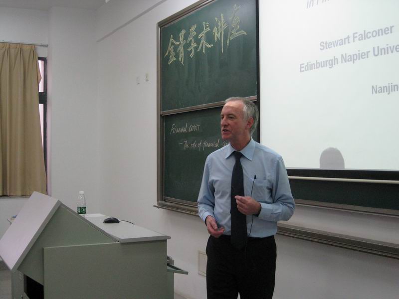 院长汪祖杰教授向Mr. Stewart Falconer颁发金融学客座教授聘书。 晚上, Mr. Stewart Falconer、高善生教授作了题为“金融危机下金融教育的功能”讲座。Mr Stewart Falconer教授首先以一段精彩诙谐的开场白引出了全场讲座的主题,他阐述了金融服务业的现状,分析了信用的功能和金融服务业的积极作用。同学们也十分踊跃地与教授进行互动,用流利的英文向他提出自己的疑问,Mr. Stewart Falconer教授一一作了解答。 6月5日上午,在莫愁行政楼会议室,Mr. Stewart Falconer一行与high漫画