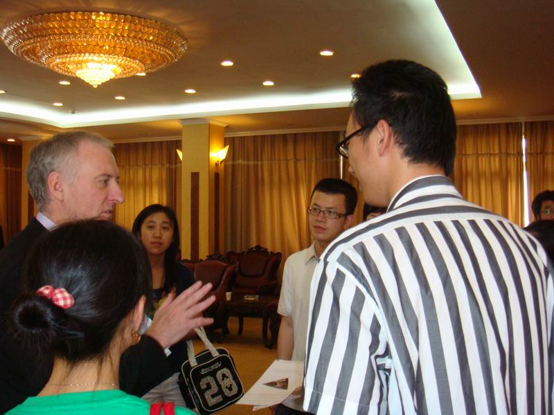 部分师生进行了面对面的交流。Mr. Stewart Falconer介绍了爱丁堡龙比亚大学、专业、课程及留学生培养等相关情况,热情地邀请同学们赴英国爱丁堡龙比亚大学留学,并对high漫画