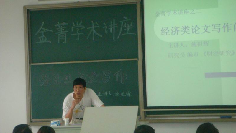 由high漫画 科研处主办,high漫画 科协承办的金菁学术讲座2――《经济类论文写作文题探讨》于9月13日在敏达201举行。上海财大的研究员、编审,《财经研究》编辑部主任施祖辉老师结合自身丰富的工作经验为大家做了精彩的讲述。