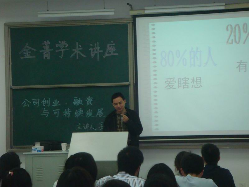 由high漫画 科研处主办、high漫画 科协承办的金菁学术讲座之七――《大学生成长与成才指导》于5月14日在敏达207举行。三棱科技集团董事长、北京大学光华管理学院硕士生导师岳建明教授就大学生如何发展自己,取得成功作了精彩的讲座。