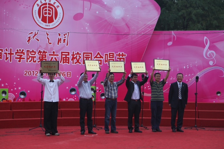 我院本次参赛曲目是极具台湾山地风格的《娜鲁湾情歌》。张老师的专业指挥,领唱触动心灵心的婉转歌喉,全体参演师生震撼人心的歌声,历时近一个月的艰苦训练的成果终于完美展现了出来。《娜鲁湾情歌》唱出了全新的风格,唱出了真切的感情。这饱含深情的动人旋律不仅赢得了全场掌声,也打动了在场的评委老师。最终我院以9.87的高分与国际审计学院并列第一,并获得“优秀组织奖”。 赛后,评委孙振华老师告诉我们,评判过程中,音准与演唱节奏是基础,精神面貌也同样重要,歌曲难度更是评分的一大关键,这主要体现在分声部上,而我院正是在多声部的同时达到了较高的和谐度,为我院一举夺魁奠定了坚实的基础。