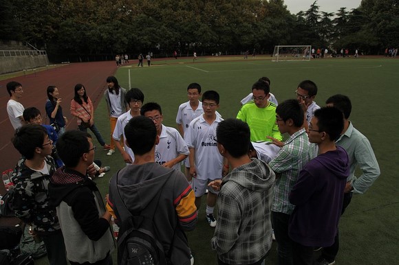 下半场的时候,我院稍稍调整了战略,队员们精神抖擞,士气大增。比赛进行到一半时,一个完美的进球将赛场的气氛推向高潮。我院打进了本场的第一个进球!汗流浃背的队员们在这一球的激励下愈战愈勇。