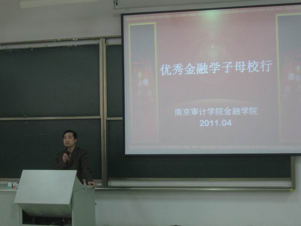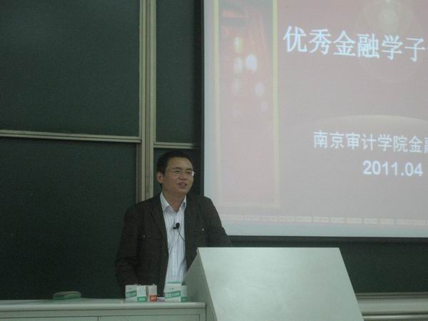 毕庆锋,原1995级国际金融2班学生,现就职于江苏省证监局党委办公室。他主要给大家讲述了自己毕业至今的几个阶段。个中的成长坎坷,让大家敬佩,唯有磨砺才会使人成长。最后,他还给学弟学妹提了三个建议:1.作为社会人,必须要有进取心,努力向上;2.要好好对自己的人生进行规划,50岁之前步子可以迈大一点,而在以后往往可以慢一点;3.敢于向顺境说不。