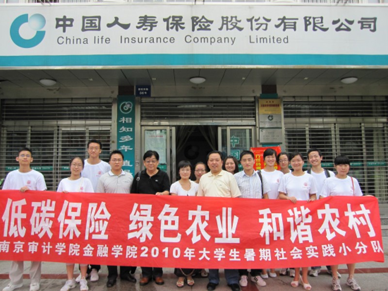 2010年大学生暑期社会实践保险小分队在镇江市保险学会刘秘书长、指导老师刘玉焕和黄健的带领下展开了第二天的实践调研。上午九点半,大家来到中国人寿扬中支公司,副总经理王祥和5位网点经理与师生们进行了交流。