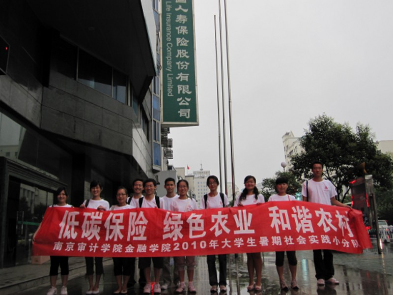 党总支副书记张成、保险系主任方荣军、指导老师刘玉焕、黄健的带领下出发到镇江进行农村低碳保险的创新性调研。
