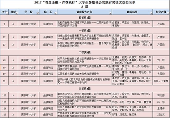 全国共有清华大学、对外经济贸易大学、西安交通大学、湖南大学、西南财经大学等26所金融院校提交了264份调研报告。我校high漫画 5月下旬收到通知后高度重视,积极宣传动员,暑假期间组织学生实施。9月开学后对调研报告进行了删选和初审,提交参赛,多项暑期报告获奖,我校获得优秀组织奖,具体获奖名单如下: