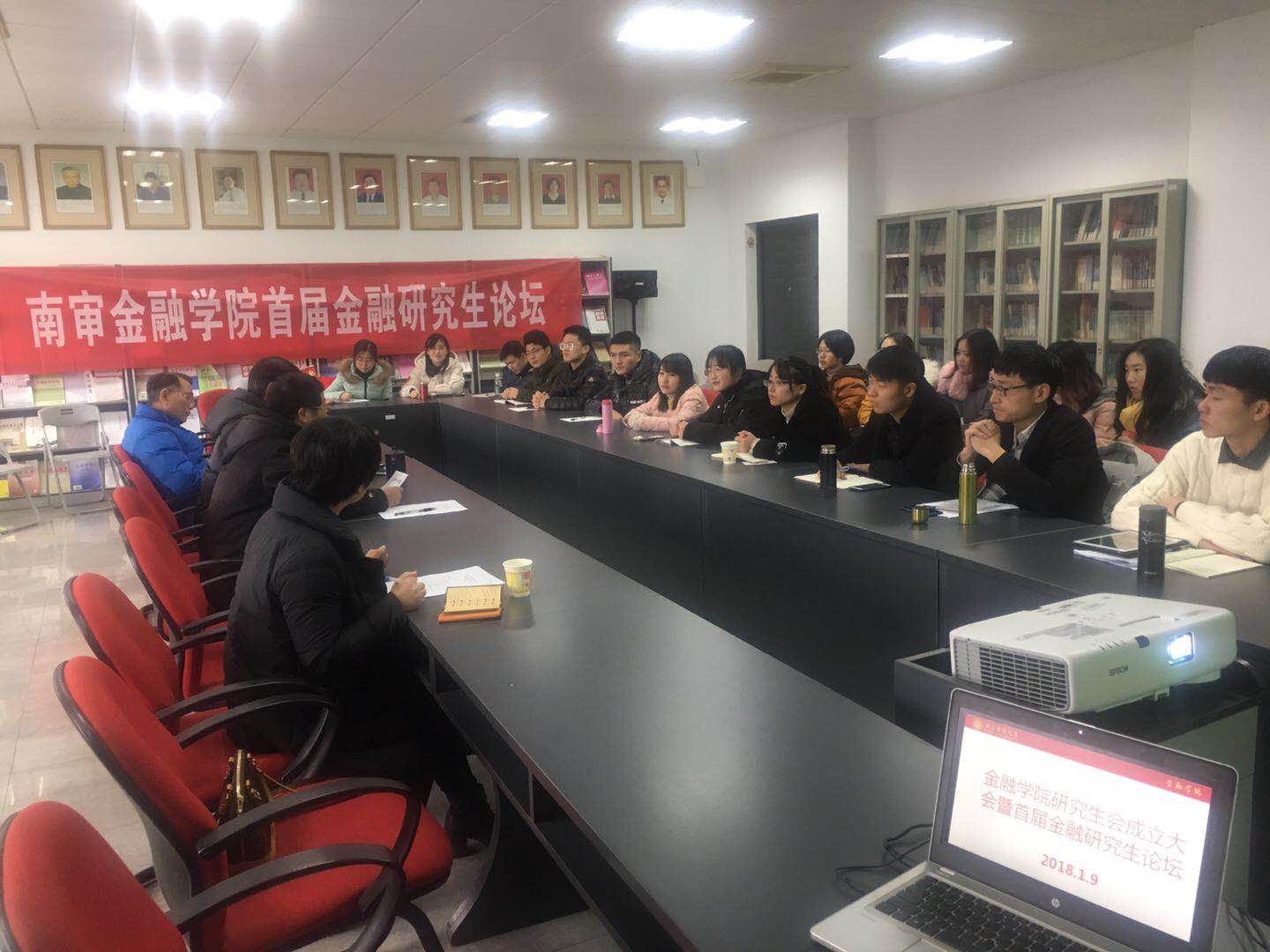 2019年1月9日下午,在浦口校区敏达楼516会议室high漫画 研究生会成立仪式暨首届“南审金融研究生论坛”成功举办。high漫画 副院长石岿然教授主持了仪式与论坛,参与本次论坛的还有high漫画 党总支书记陆凯旋教授、孙清教授、high漫画 金融专硕项目负责人刘妍副教授、部分研究生导师、high漫画 金融硕士研究生。