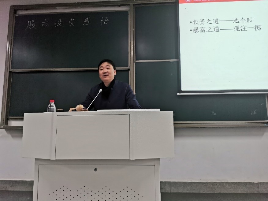 章教授精彩生动的讲解,让同学们意犹未尽。章教授丰富的股市投资知识和经验时使同学们受益匪浅。同时,同学们也明白了股市投资的高风险和高收益、股市投资的注意事项以及如何更好地在股市中投资。