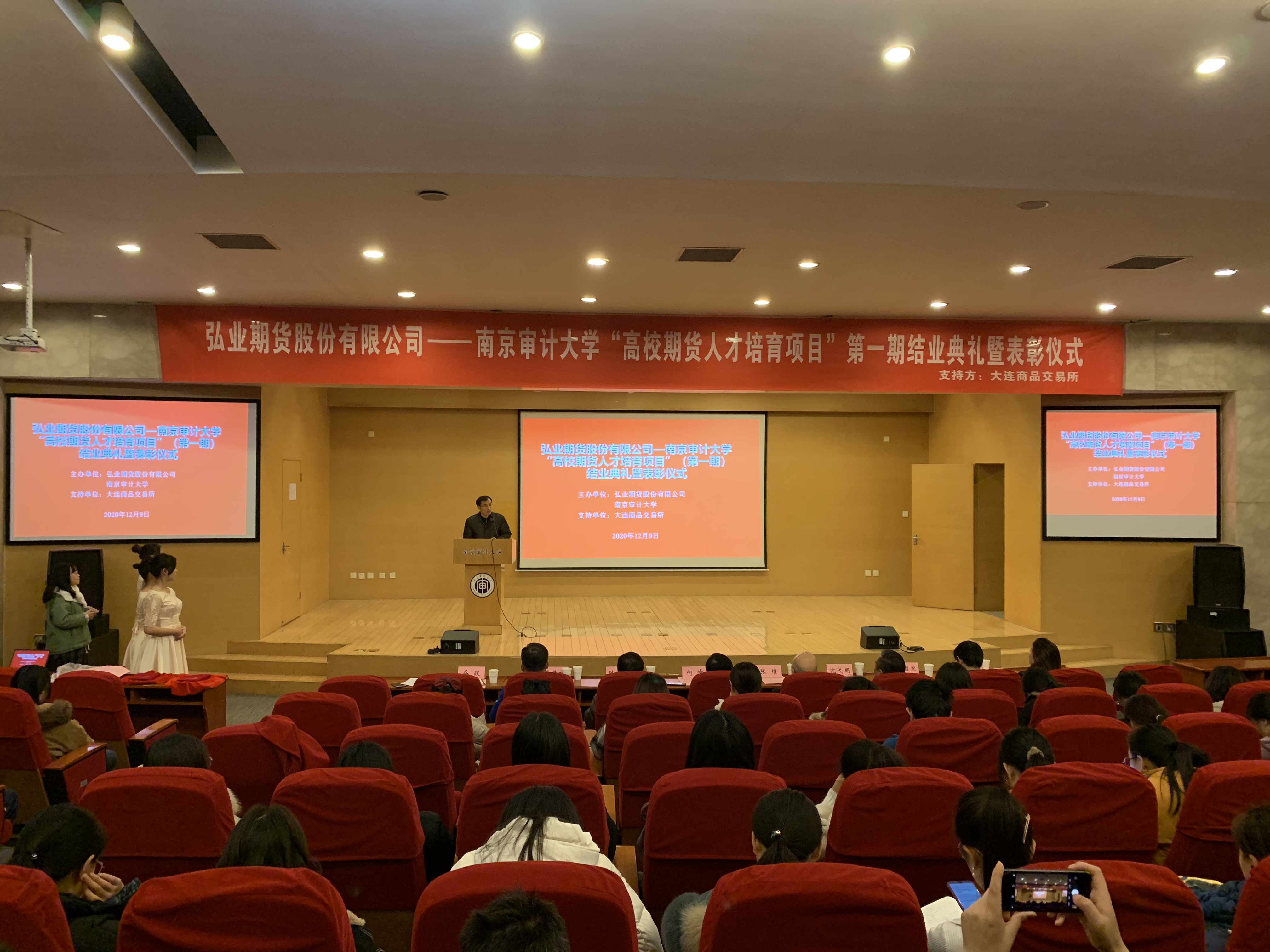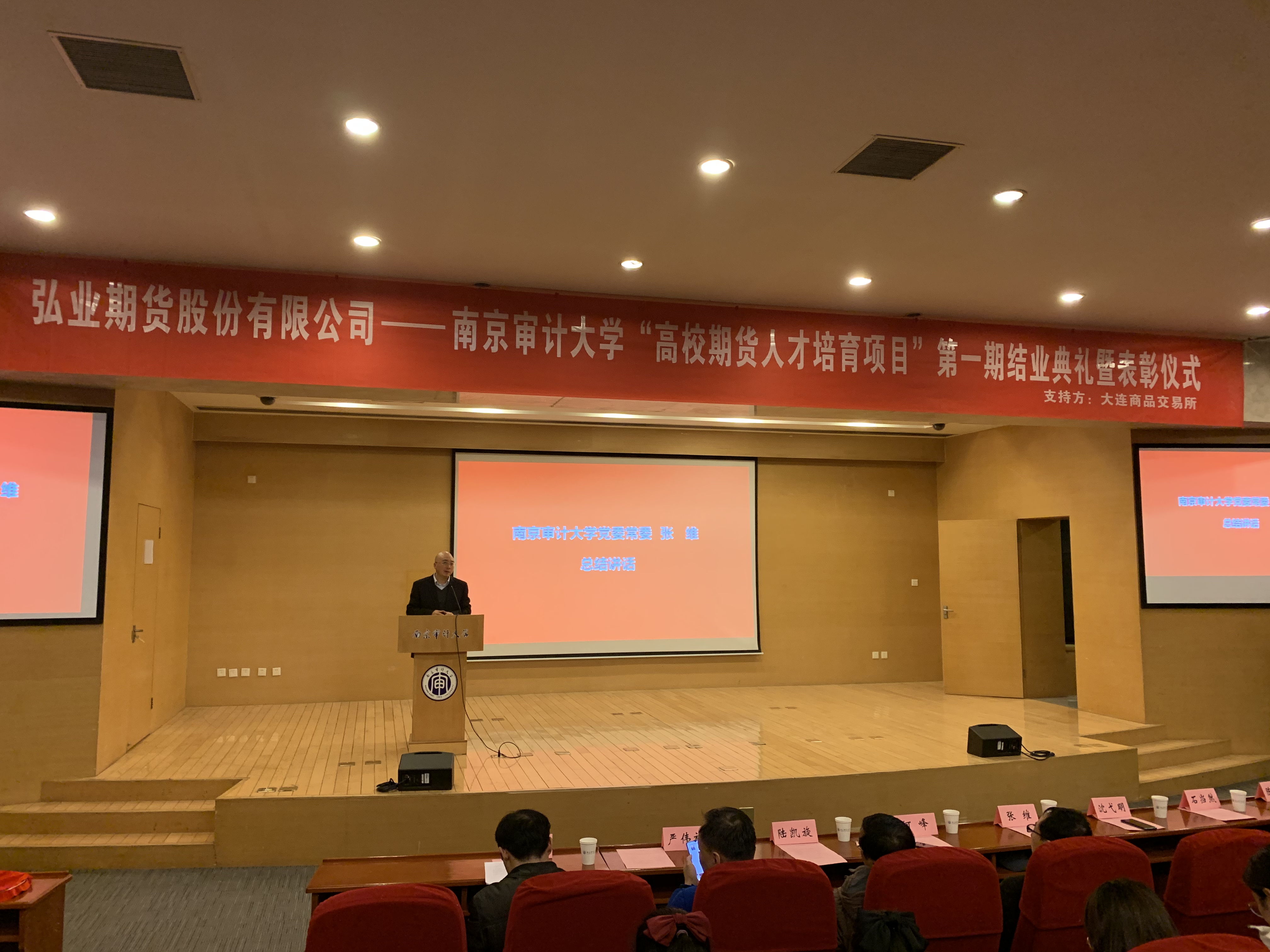 2020129日下午,弘业期货股份有限公司——high漫画 “高校期货人才培育项目”(第一期)结业典礼暨表彰仪式在我校浦口校区敏达学术报告厅顺利举行。high漫画 党委常委张维,江海粮油集团有限公司副总经理何峰,弘业期货股份有限公司经纪业务管理部负责人沈弋明,high漫画 党委书记陆凯旋,high漫画 院长石岿然,high漫画 投资系主任严伟祥出席结业典礼。活动由high漫画 副院长谷政主持。