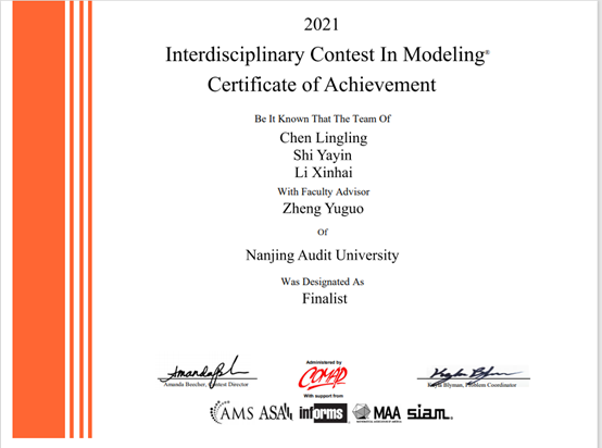 2021美国大学生数学建模竞赛(MCM/ICM)成绩于423日揭晓,我院英才2019级金融学(金融科技方向)班陈玲玲、2019级金融5班施亚茵、2018级金融6班李鑫海三名同学从数万支参赛队伍中脱颖而出,斩获特等奖提名奖(Finalist大奖),全球获奖率2%,创造了我院学生自参赛以来的最佳成绩。
