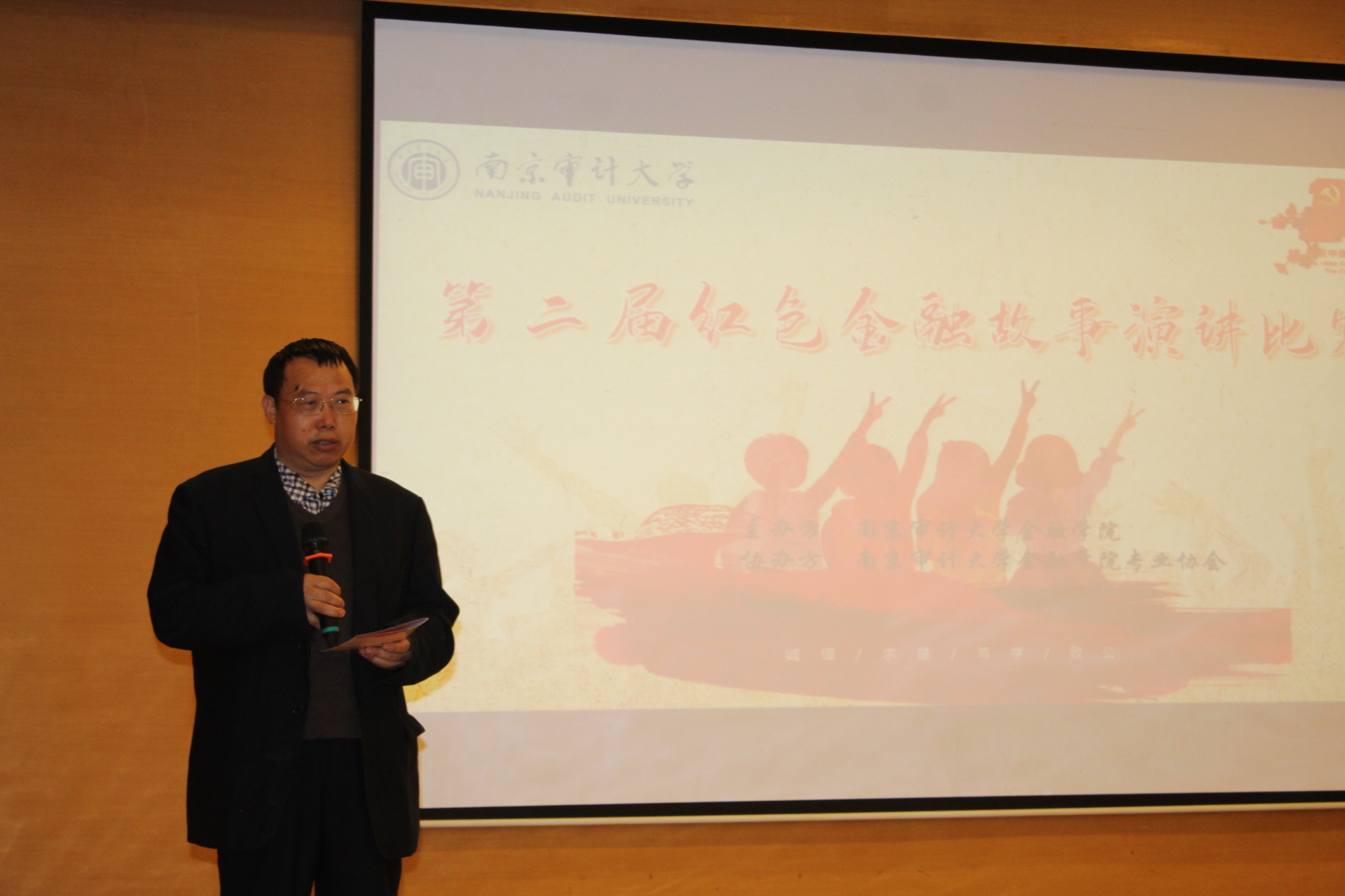 谷政副院长为活动致辞。他表示,讲好金融故事,传承红色金融基因是金融人的使命和担当。他带领同学们回顾了中国金融业发展的历程和百年间无数金融革命斗士的光辉事迹。他指出,举办此次活动的初心就是让南审青年通过重温红色金融故事,讴歌与赞颂为新中国金融事业发展而励精图治、呕心沥血的革命先辈,进一步宣传中国共产党的百年辉煌史和廉洁治党理念,引导青年学子永远跟党走,坚定“四个自信,增强四个意识,做到两个维护,继承和发扬廉洁朴素的传统和精神。