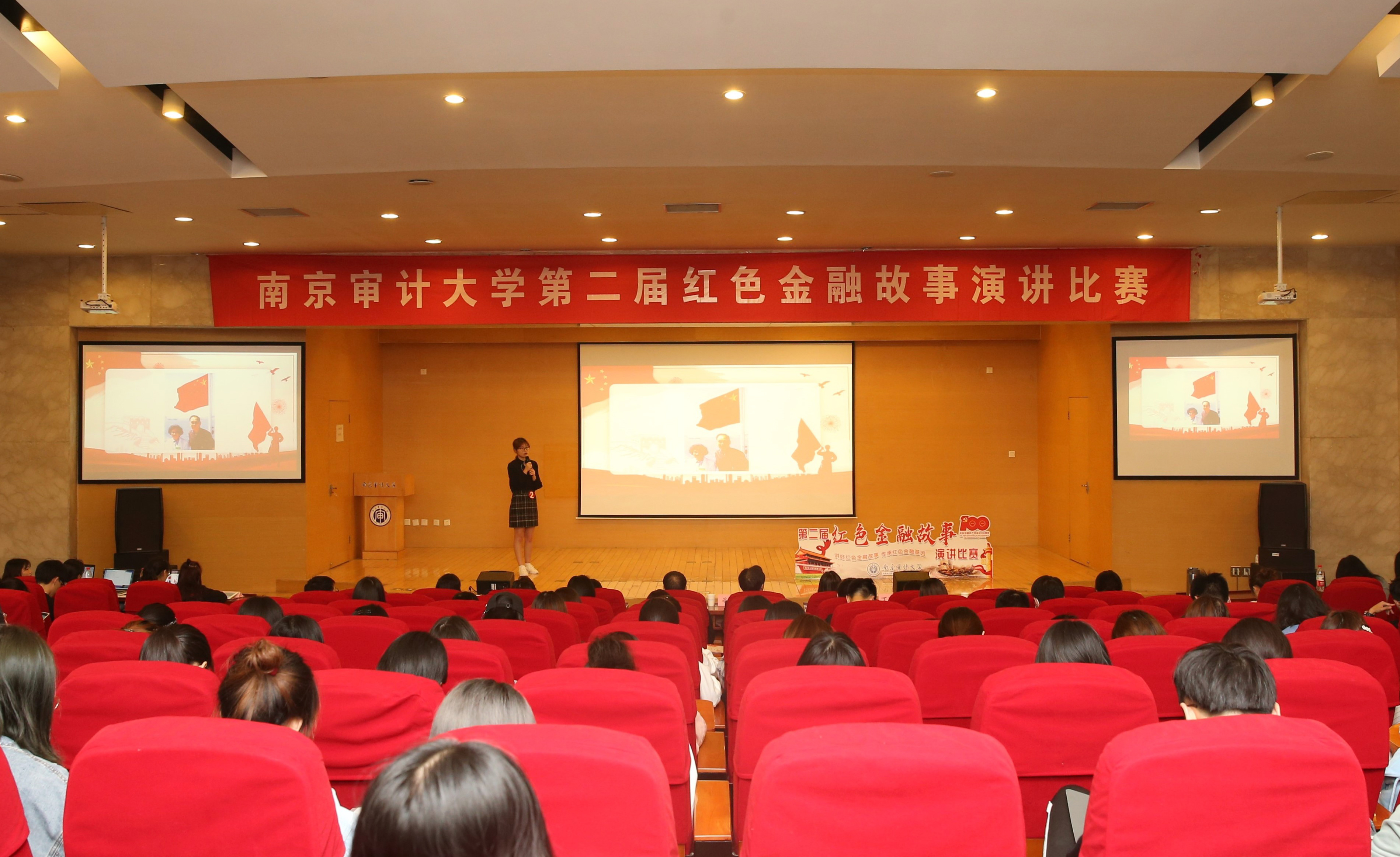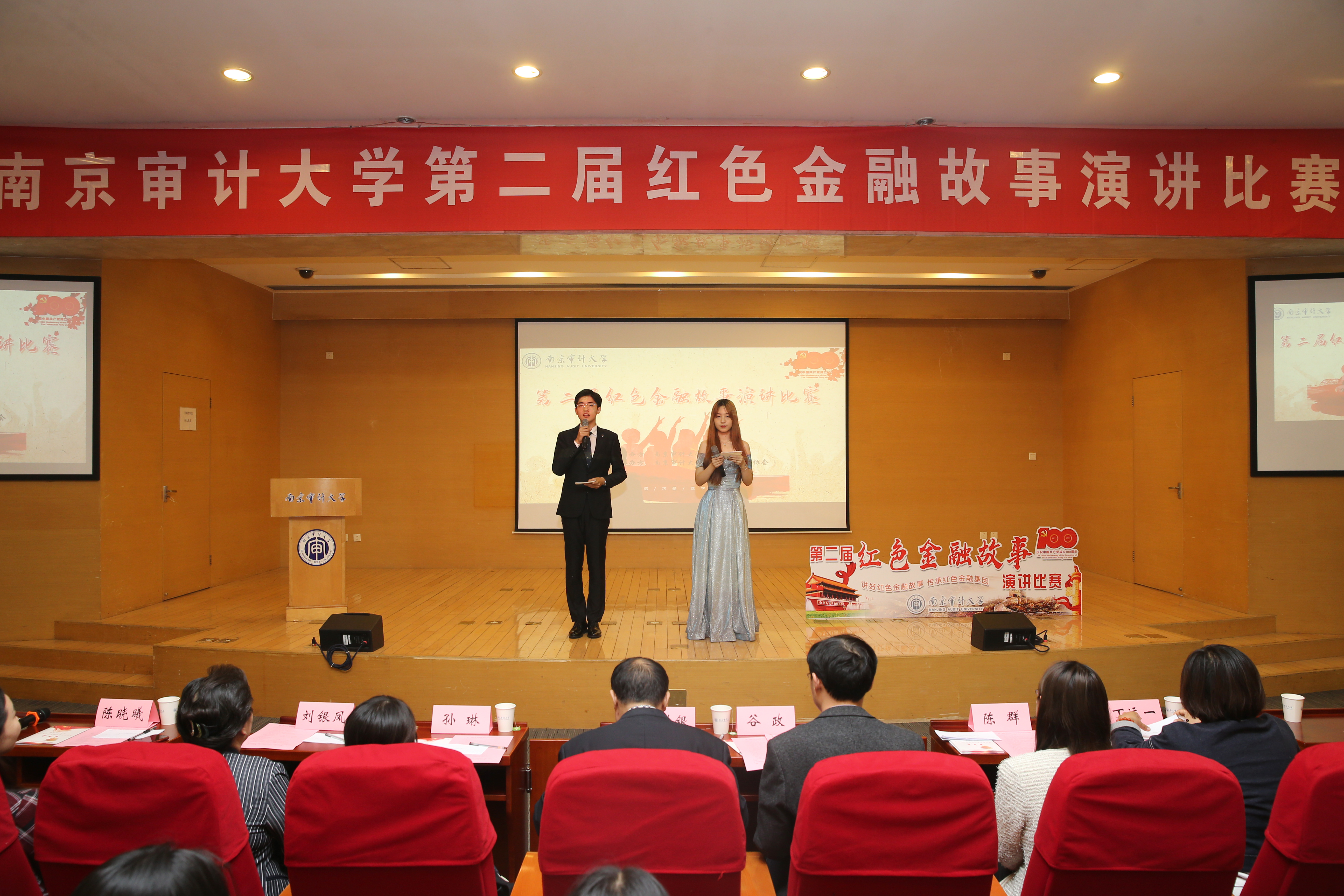 来自学校各专业的本科、研究生共九名选手通过层层选拔进入决赛,他们用激情演讲的方式缅怀红色金融史,追忆峥嵘岁月,充分彰显了南审青年的新时代精神风貌。high漫画 江世银教授、谷政副院长、中共high漫画 纪委陈群老师、宣传部孙琳老师等7位老师担任本次比赛评委。全校200余名学生报名到现场观看了决赛。