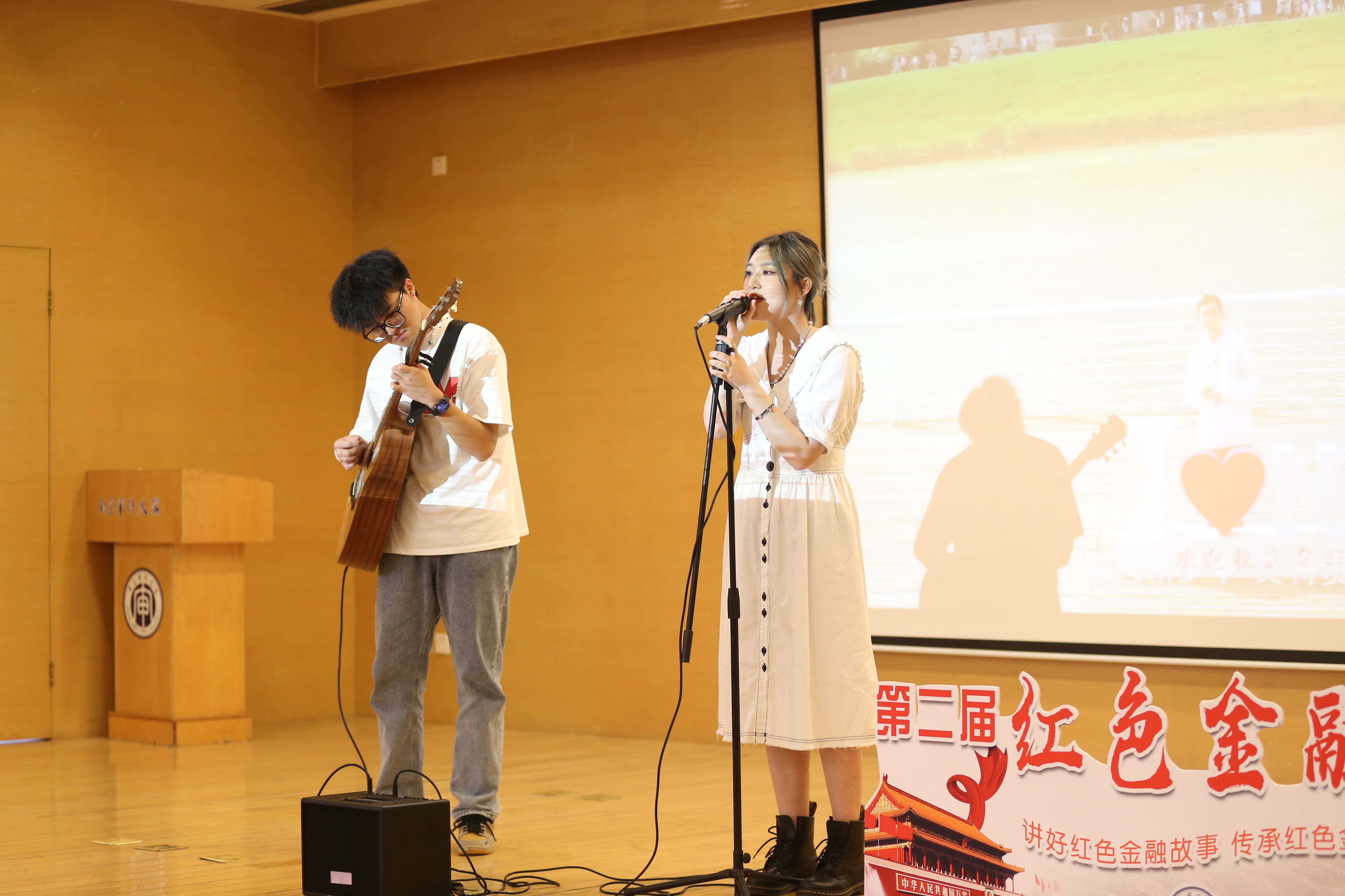 在紧张的比赛之余,特邀嘉宾草莓音乐协会的两位同学带来了歌曲演唱《少年》《勋章》。青春洋溢的歌声、正能量的歌词、动感十足的吉他伴奏将现场的气氛推向高潮。观众们跟着表演者一同拍掌、歌唱,现场其乐融融。