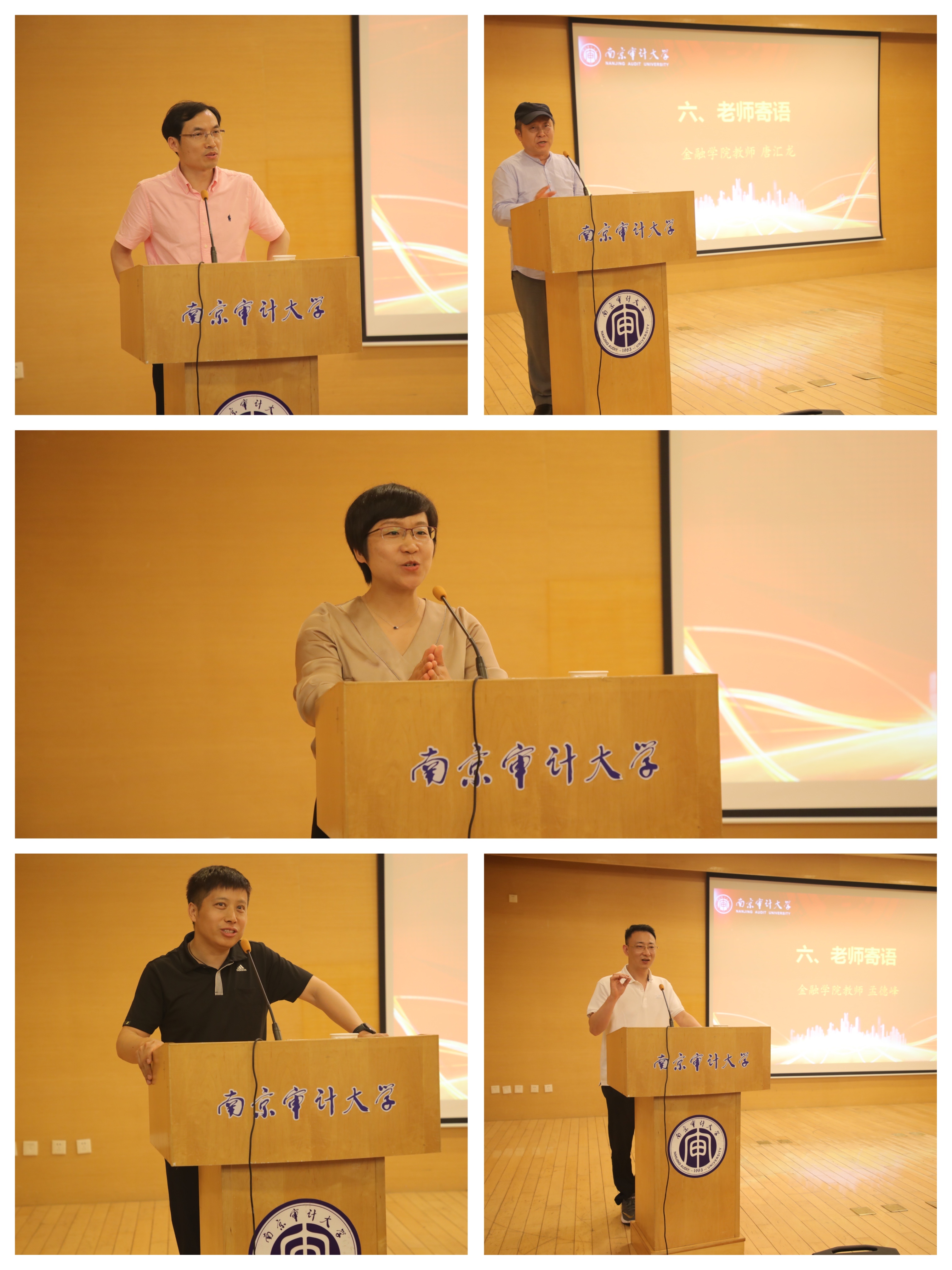 校友代表发言结束后,谷政副院长、唐汇龙老师、孟德锋老师、周喜林老师、刘妍副院长(按发言顺序)分别作为教师代表上台发言。他们回忆了与06级金融学子相处的珍贵时光,邀请大家常回家看看,并为大家送上寄语。