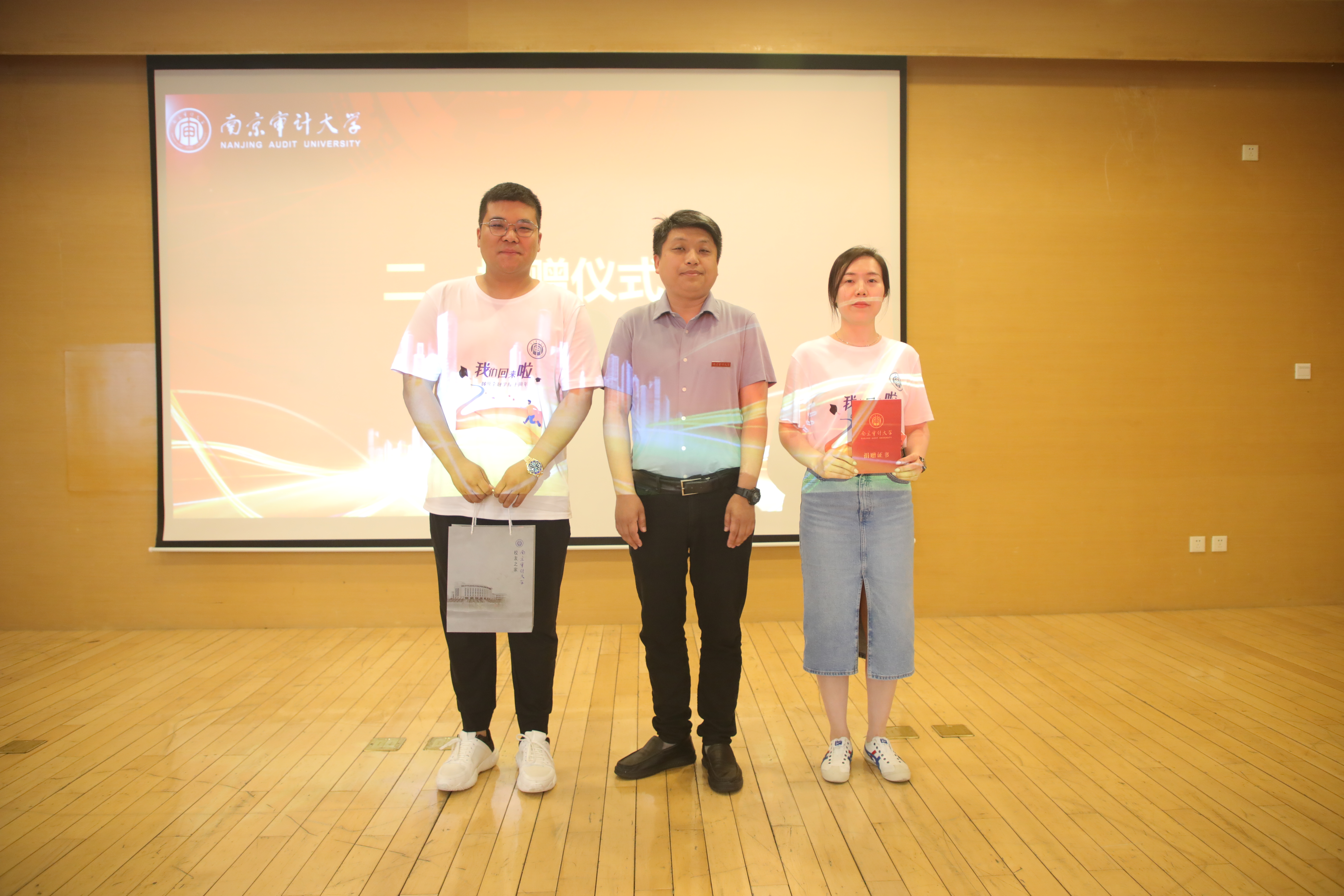 校友办张林林副主任为校友代表颁发了校友林捐赠认领证书,并为校友们赠送了校友卡等伴手礼。刘骅副院长代表high漫画 上台接受了校友们集体赠送给学院寓意吉祥的纪念品。