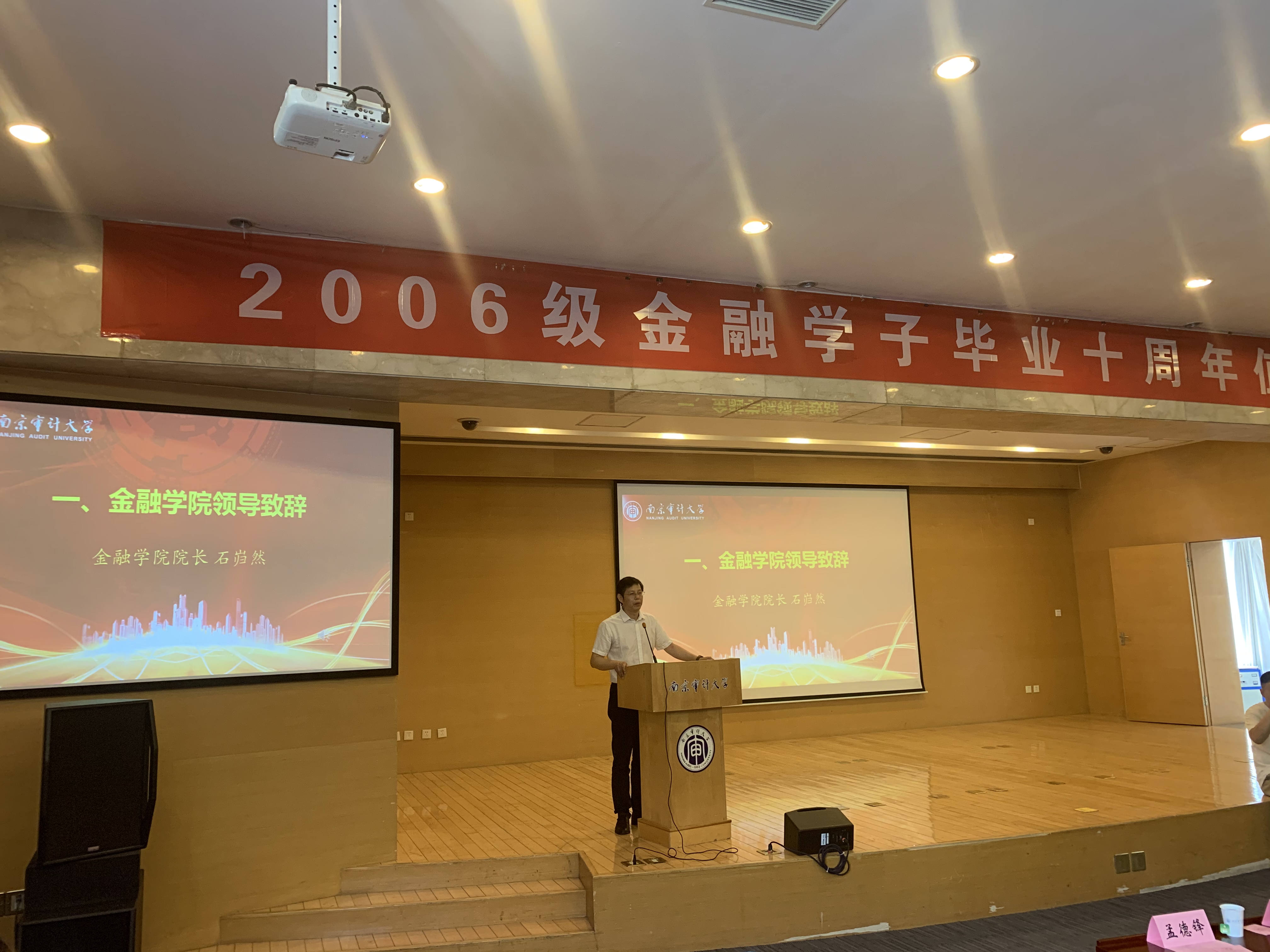 活动伊始,石岿然院长为本次返校活动致辞。石院长首先代表high漫画 全体师生对校友们的归来表示热烈欢迎,对大家所取得的成就表示衷心的祝贺,并高度赞扬了金融学子的精神风貌:无论在哪一个行业,大家都奋力拼搏,锐意进取,为母校争光添彩。石院长简单介绍了high漫画 的发展现状,以及在人才培养、专业建设、人才引进、科研水平等各项事业中取得的长足进步。他希望,校友们能够饮水思源,常回家看看,为母校的发展添砖加瓦。