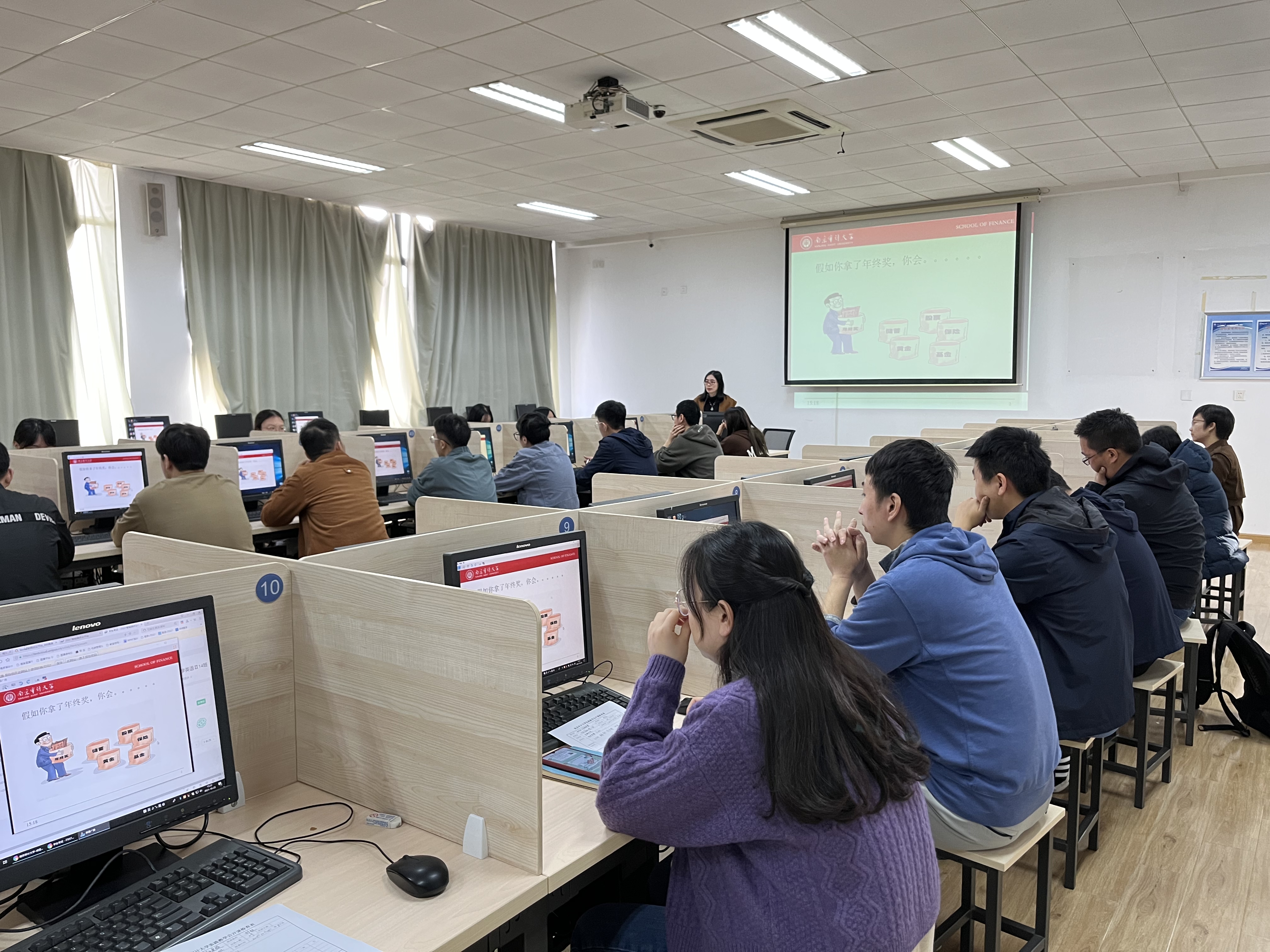 2021年10月25日下午,我院组织教师在竟秀楼南楼s302机房集体观摩金融工程系邢钰老师的“Matlab与金融建模”课程,刘妍副院长、学院教务办和8位学院教师参加。邢老师精神饱满,授课思路清晰,采用案例分析等方法,并适度拓展,师生互动频繁,课堂气氛活跃,授课效果良好。学院姜勇、李杰老师和邢老师就课堂教学进行交流,刘妍副院长进行点评。