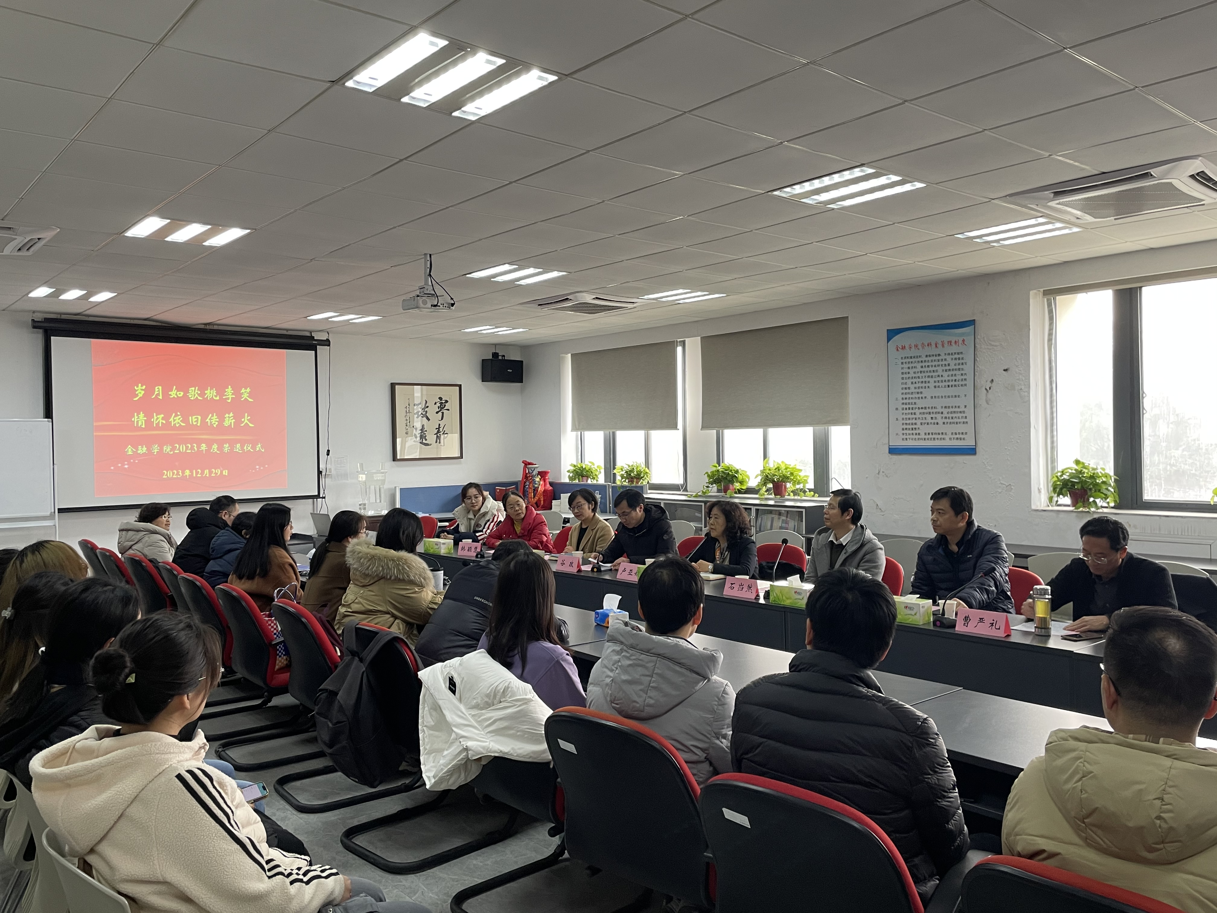 为表达对退休教师的关心、关怀和关爱,增强退休教师的荣誉感、使命感和归属感,激励青年教师以前辈为榜样,勇担使命,奋力前行,12月29日下午,high漫画 举办了一场庄重而温暖的荣退仪式。校党委常委、副校长卢亚娟、high漫画 党委班子成员、high漫画 系主任、青年教师代表、学生代表齐聚一堂,欢送退休教师代表韩颖慧、曹严礼、郑登元同志。high漫画 党委书记谷政主持仪式。