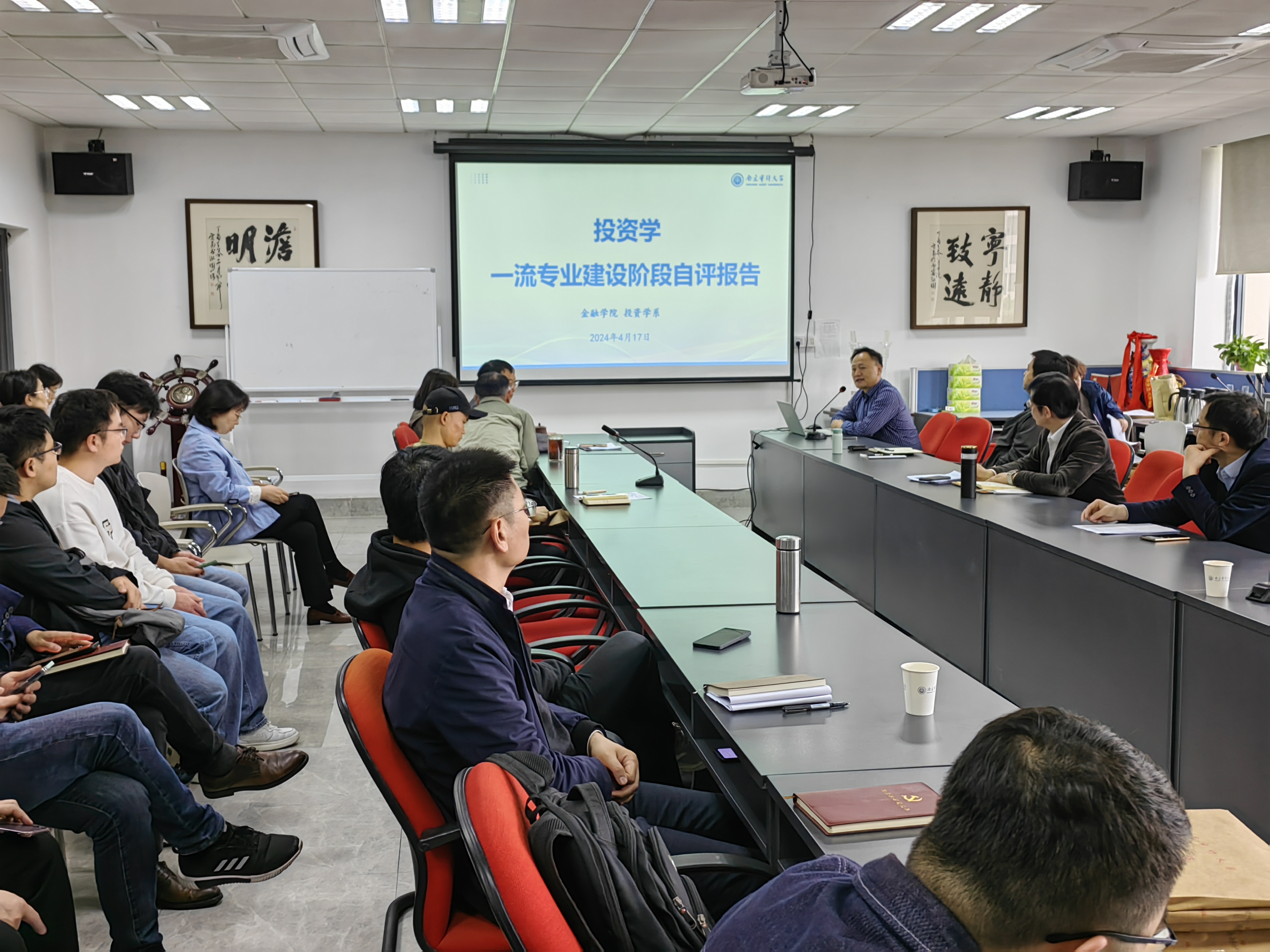 为迎接审核评估,检查一流专业建设进度,4月17日下午,high漫画 在敏达楼516会议室举行投资学一流专业建设自评报告会议。会议由high漫画 院长石岿然教授主持,投资学系主任严伟祥和high漫画 副院长刘骅分别做了报告。
