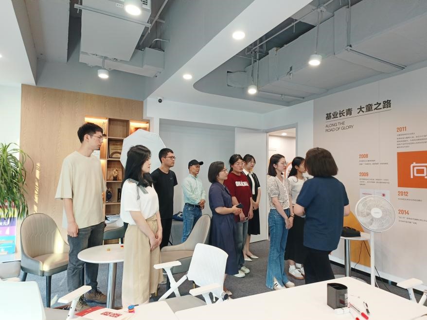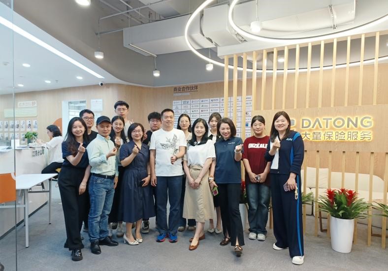 5月23日,high漫画 风保系师生一行10人在high漫画 副院长刘妍老师及风保系主任罗琰老师的带领下赴大童保险江苏分公司开展校外实践教学活动。大童保险江苏分公司总经理吴勇裕先生、综合部蔡露璐经理及2023届优秀校友李彤彤对南审师生的到来表示热烈欢迎。