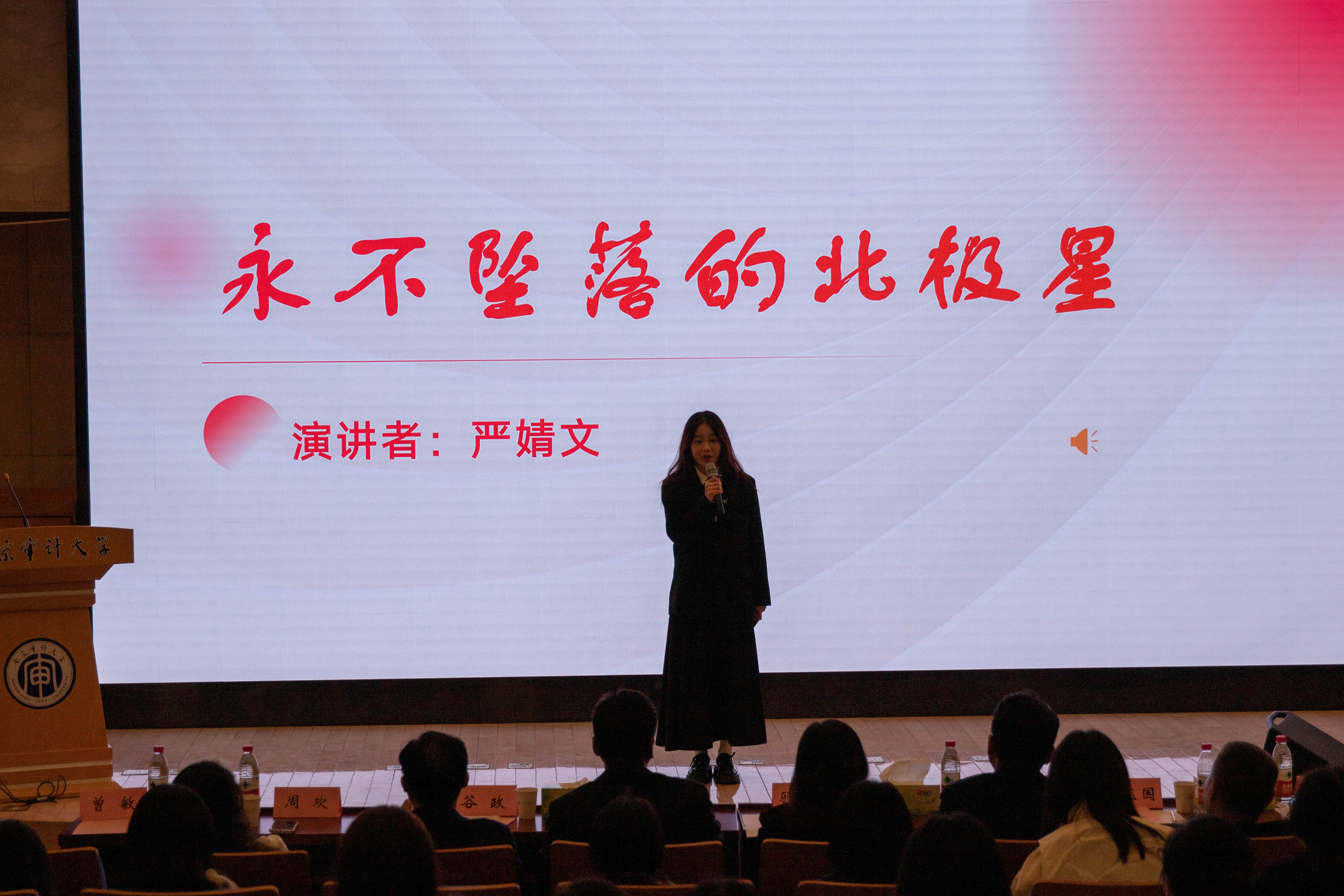 经过层层选拔,来自全校各专业的10名本科生和研究生脱颖而出,进入决赛。比赛当天,参赛选手们或激情澎湃或温婉细腻,用真挚的情感讲述着百年红色金融史。从扁担银行的坚守到冀南银行的成立,从“红色保险掌门人”谢寿天到红色金融杰出代表李葆华,一个个红色金融故事娓娓道来,每一个故事都承载着厚重的历史记忆和崇高的理想信念。