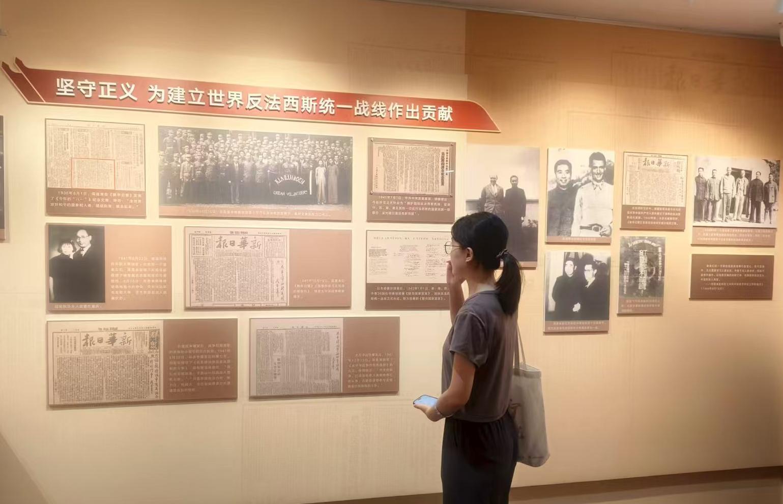 7月18日,队员们转至周恩来图书馆,这座纪念周恩来诞辰百年而建的精神宝库,收藏着海量论著与文献。恰逢中国人民抗日战争胜利80周年,场馆内布置了庆祝抗战胜利的标语,队员们认真阅读陈列的史料,感受我党领导人带领人民一路走来的艰辛。