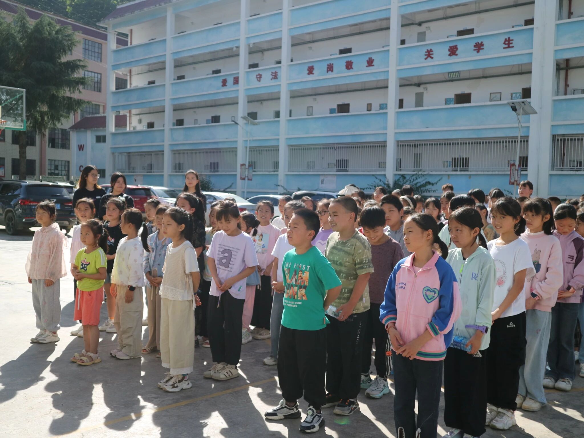 运动课程是夏令营的活力引擎。最初,不少女孩面对篮球或舞蹈动作时,眼神里带着羞涩和闪躲,手脚显得有些拘谨。而志愿者们也并不急于求成,篮球课上,从最基础的原地运球开始,掌心感受橡胶球体的弹跳,一下、两下……直到能控制它稳稳地在地面跃动;体育舞蹈则从最简单的脚步移动和手臂摆动教起。为了帮助她们卸下心防,团队精心设计了“随风飘扬”——女孩们随风舞动,只需舒展身体,没有固定动作的压力;“舞力电波”——大家围成圈,一个眼神或一个微小的动作变化,如同电波般传递,下一位迅速模仿并创造新动作。这些低压力、高趣味的游戏,让女孩们紧绷的肩膀松弛下来,嘴角开始上扬,笑声取代了沉默。