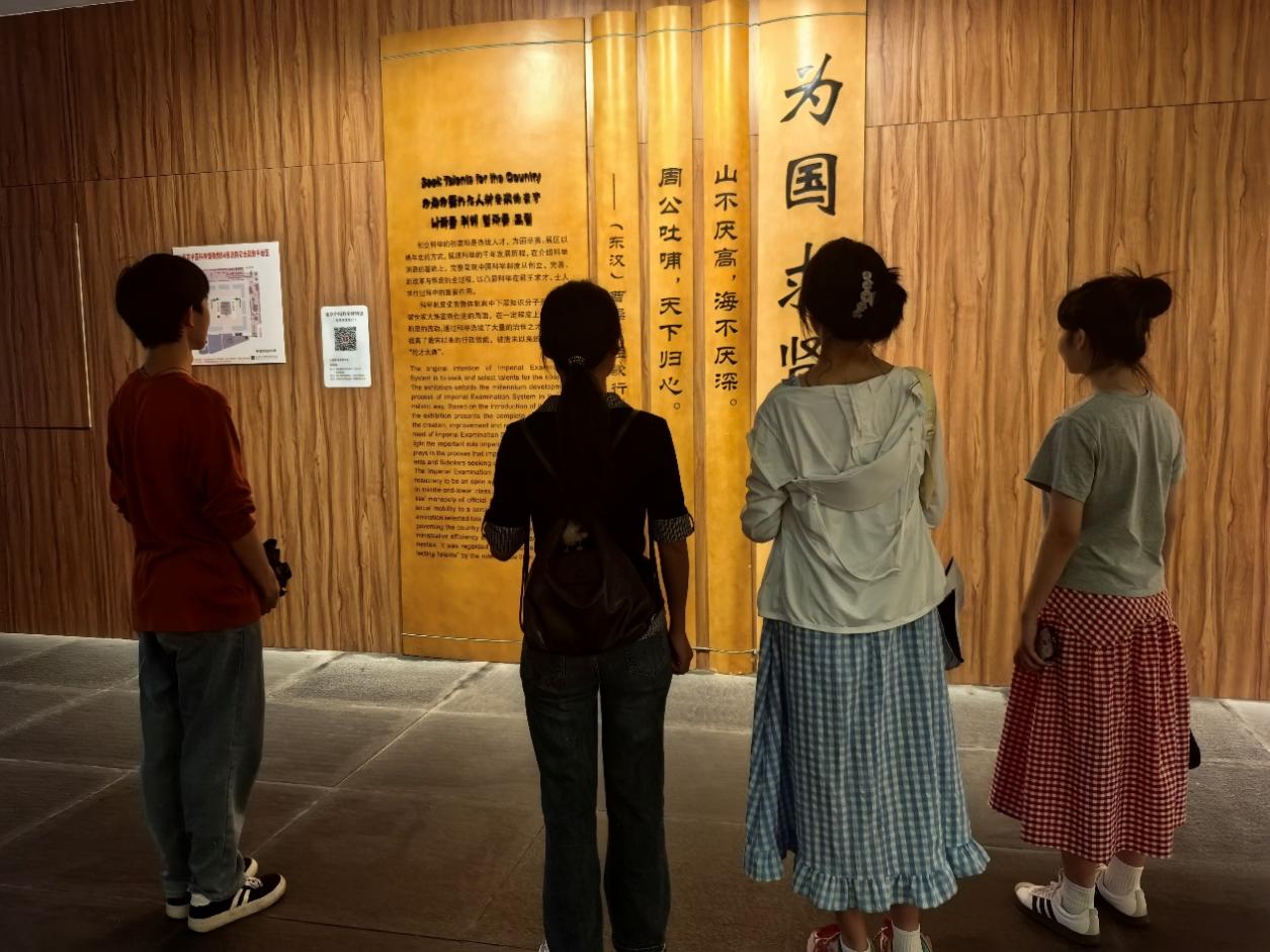 7月4日,团队探访南京中国科举博物馆,在江南贡院遗址中触摸千年文脉。团队成员沿着展线细致参观,驻足于童生试规程模型前观察细节,在殿试金榜复制品前驻足研读,仔细端详考生答卷原件,在复建的古代号舍前沉思,深刻体悟古代士子寒窗苦读的艰辛与执着。