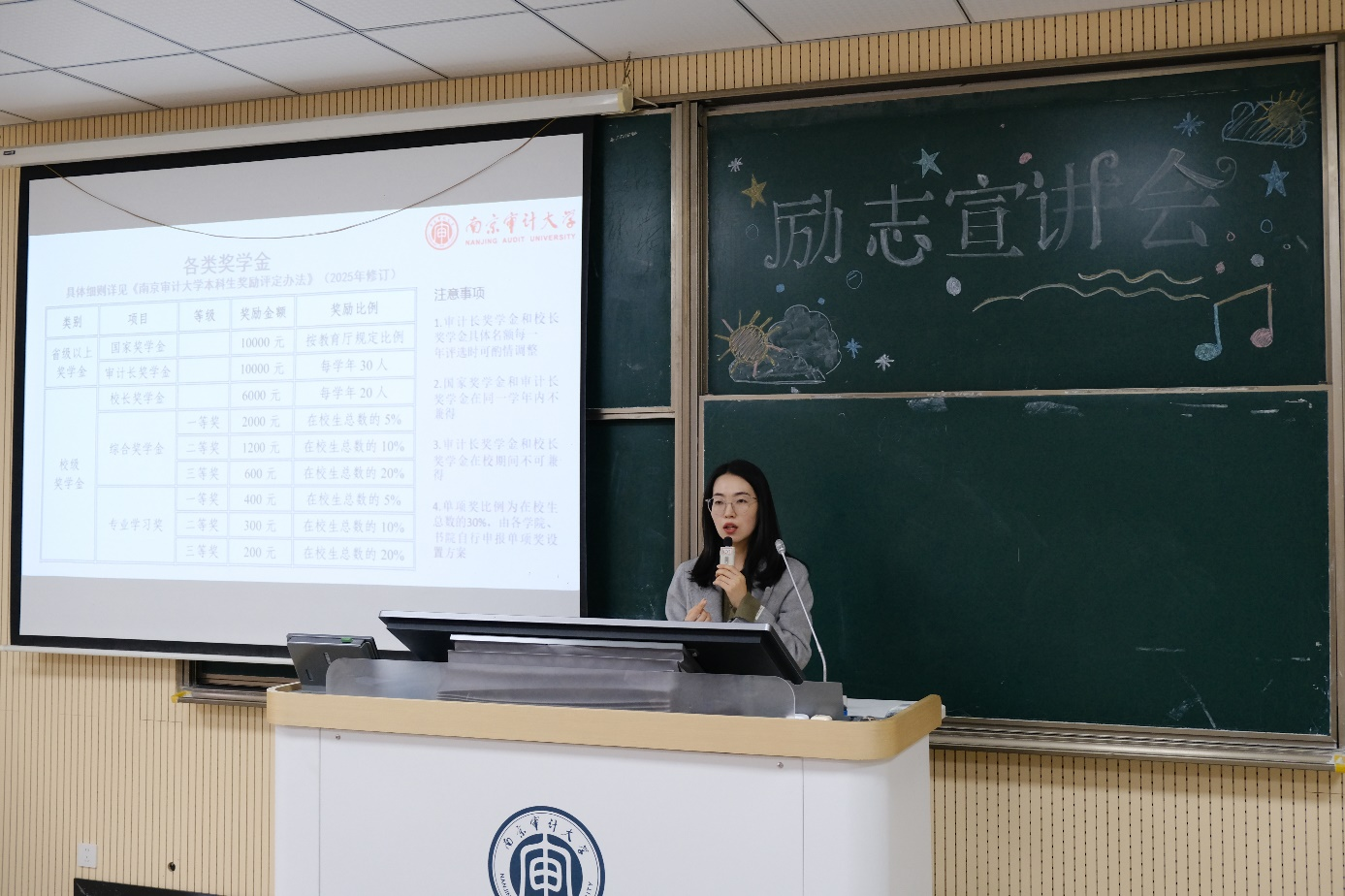 学生发展服务中心资助工作部副部长花颖向同学们介绍了《励志计划书》的填写要求及审核细则,帮助同学们进一步理解“励志计划”的内涵与意义。学生发展服务中心主席梁意翀向同学们介绍了大服各部门的职能,鼓励大家积极参与素拓和志愿活动,在实践中锻炼能力、收获成长。学生发展服务中心社区服务部伍媛媛、闫昱羲则结合校园火灾与电信诈骗典型案例,开展安全教育宣传,引导同学们增强防范意识与自我保护能力。缪老师详细解读了学校与学院“奖、助、勤、贷、补、免”六位一体的资助政策体系,引导同学们明晰资助、奖励标准,明确努力方向。号召与会同学树立远大志向,努力学习,用知识改变命运,并积极投身实践,将所学所思转化为服务社会、奉献国家的实际行动,在实践锻炼中增长才干,做“立志”、“励学”、“力行”的有为青年。