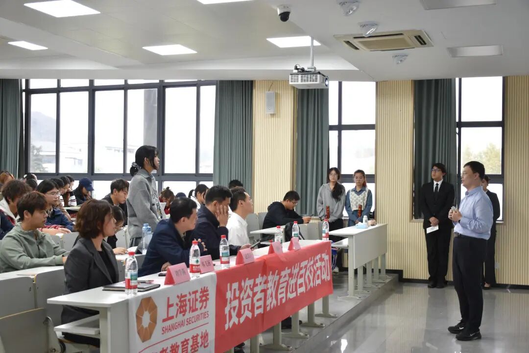 上海证券江苏分公司总经理赵晋江代表合作方发表讲话。他介绍,上海证券为本次大赛精心打造了高度仿真的交易平台,力求与实盘市场同步,旨在帮助同学们锻炼真正的投资决策本领。他希望同学们能通过这次比赛,充分感受金融市场的魅力,并获得与行业专家面对面交流的宝贵机会,分享他们的投资智慧与经验,从而“拨开市场迷雾”,为未来的职业生涯奠定坚实的实践基础。上海证券江苏分公司的方梓涵老师对本次大赛的活动方案、活动流程和奖项设置等进行了详尽的解读,极大地激发了同学们的参与热情。