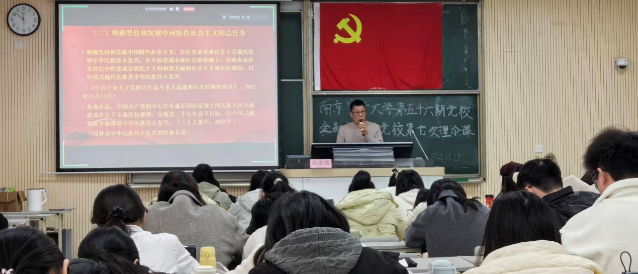 11月22日,本期分党校第四次理论党课于文济楼301顺利开讲。high漫画 沁园书院院长李祥围绕“党的最终目标和现阶段任务”主题授课。他深入结合马克思主义经典理论与党的百年奋斗历程,系统阐释共产主义作为中国共产党的最终奋斗目标的历史必然性与长期性。在此基础上,他立足新时代国情与发展实际,详细解读新时代中国特色社会主义的战略布局与发展要求,梳理党团结带领人民推进现代化、实现民族复兴的实践路径。课程最后,李祥聚焦高校学生党员的思想与成长实际,强调青年一代应自觉将个人发展融入党和国家事业,在学习和实践中砥砺初心、担当使命。